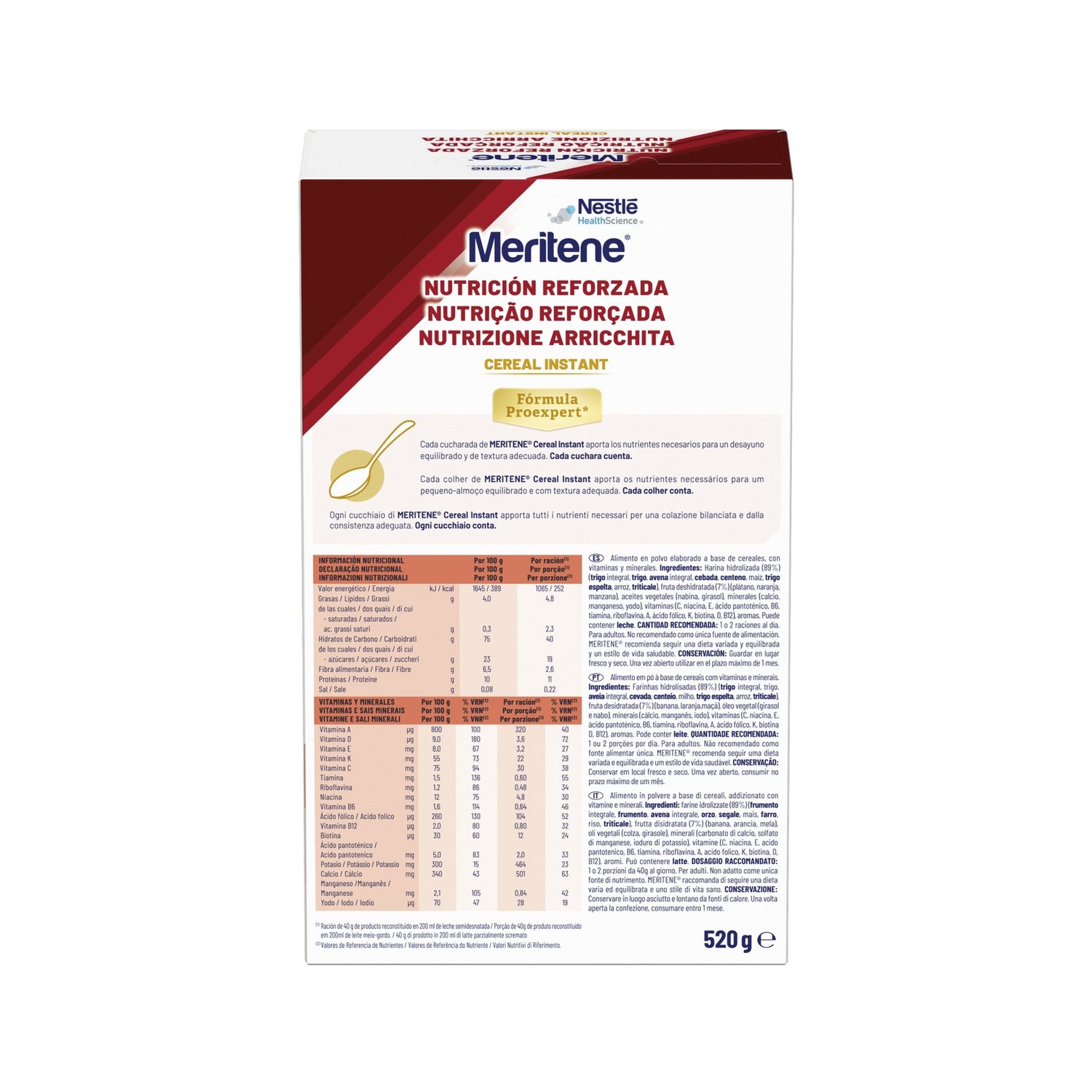 Meritene Cereal multifruit est l'une des variétés de céréales Meritene idéales pour le petit déjeuner ou le goûter. Votre apport nutritionnel équilibré transformera ces repas en moments de plaisir et de nutrition.