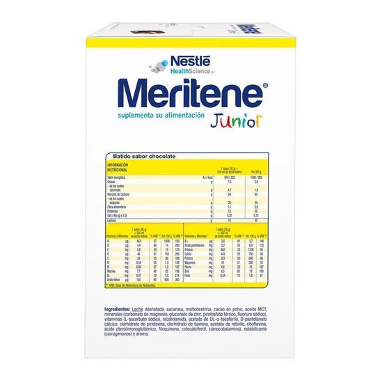 Les shakes goût chocolat Meritene Junior sont riches en protéines, vitamines et minéraux et apportent à votre enfant les nutriments dont son corps a besoin au quotidien.
