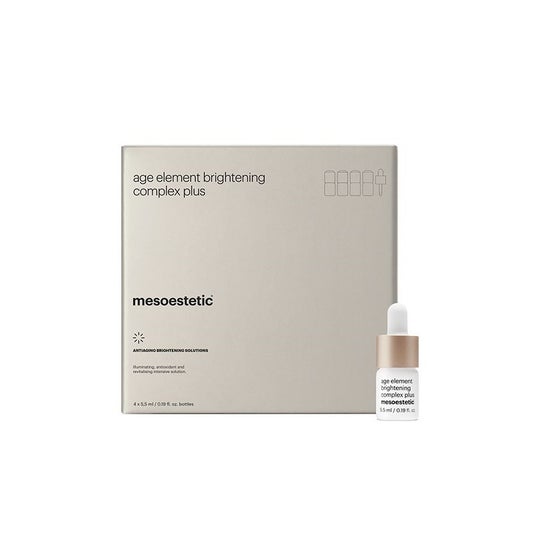Mesoestetic Age Element Brightening Complex Plus 4x5.5ml est un traitement intensif conçu pour fournir des propriétés antioxydantes, revitalisantes et éclaircissantes à la peau. Ce produit se présente sous la forme de quatre flacons de 5,5 ml chacun, ce qui permet une utilisation continue pendant quatre semaines.