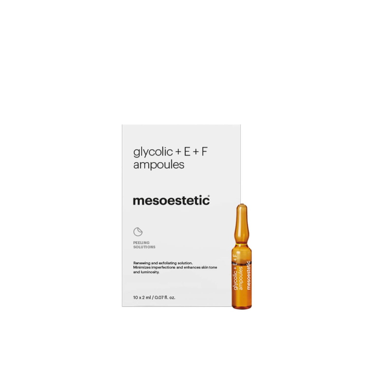 La formulation de ces ampoules combine des ingrédients qui favorisent une peau plus douce et uniforme. Son utilisation est recommandée sous la supervision d'un professionnel pour obtenir les meilleurs résultats. Les ampoules Mesoestetic Glycolic + E + F sont une option efficace pour ceux qui cherchent à améliorer l'apparence de leur peau de manière significative.