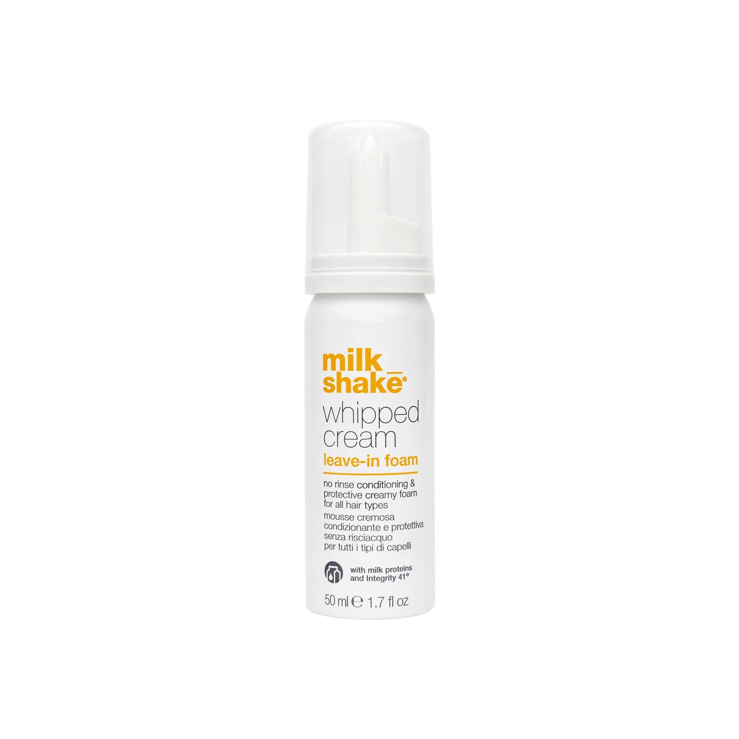 Milk Shake Whipped Cream Leave In Foam 50ml est un après-shampoing sans rinçage conçu pour maintenir l'équilibre optimal d'hydratation et protéger la coloration des cheveux.