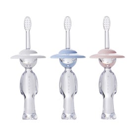 Brosse à dents innovante pour l'hygiène bucco-dentaire des enfants, avec un design amusant sur le manche en forme de personne portant un chapeau, ce qui facilite la prise en main. Fabriquée avec des poils en nylon recouverts d'ions de magnésium, de calcium et de sodium qui, au contact de l'eau, assurent une hygiène optimale sans nécessiter de dentifrice. Contribue à éliminer en douceur la plaque dentaire et à prévenir l'apparition de caries.