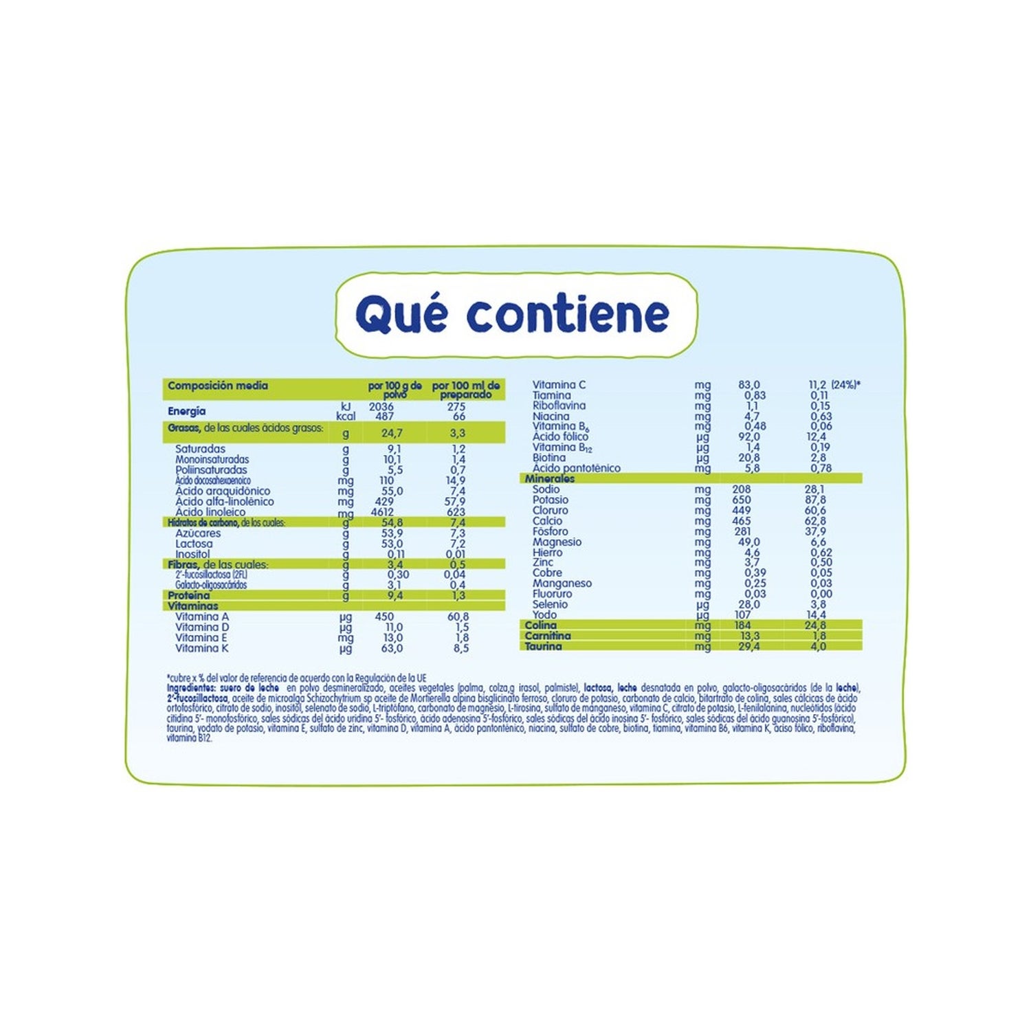 Il contient du HMO 2'FL qui renforce le système immunitaire, un composant du lait maternel qui renforce le système immunitaire et protège contre les infections. L'ARA contribue au développement cognitif. Favorise le développement du système nerveux. GOS, une fibre prébiotique qui favorise le développement sain de la flore intestinale, stimule la croissance des bifido-bactéries et soulage la constipation.