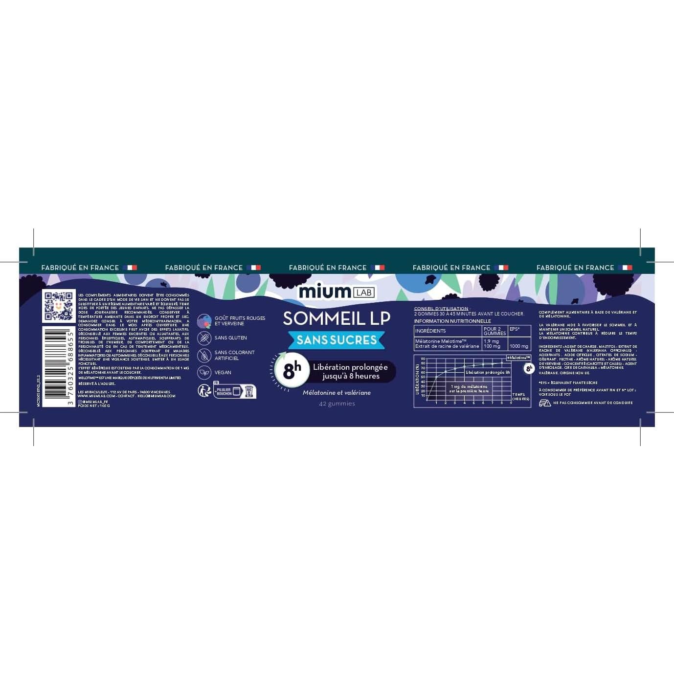 Mium Lab Gummies Sommeil 42uds sont un produit conçu pour favoriser un repos réparateur et continu. Sa formule inclut une libération prolongée de mélatonine Melotime™, idéale pour profiter de nuits complètes sans interruptions.
