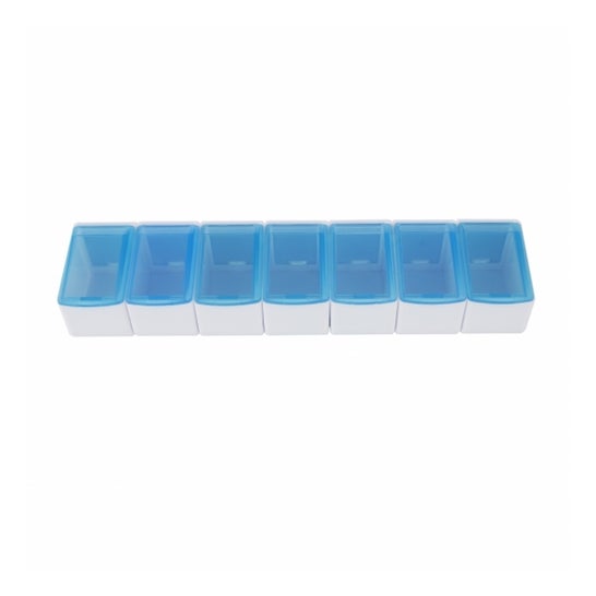 Pilulier hebdomadaire pour organiser vos médicaments, avec 7 compartiments bleus et un couvercle transparent hermétique. Il peut être utilisé pour organiser les différentes pilules quotidiennes. Il permet un système de dosage personnalisé, adapté à l'organisation et à la protection des pilules quotidiennes. Il résiste à l'humidité et permet de ne pas altérer le contenu des comprimés. Facile à désinfecter et à transporter.