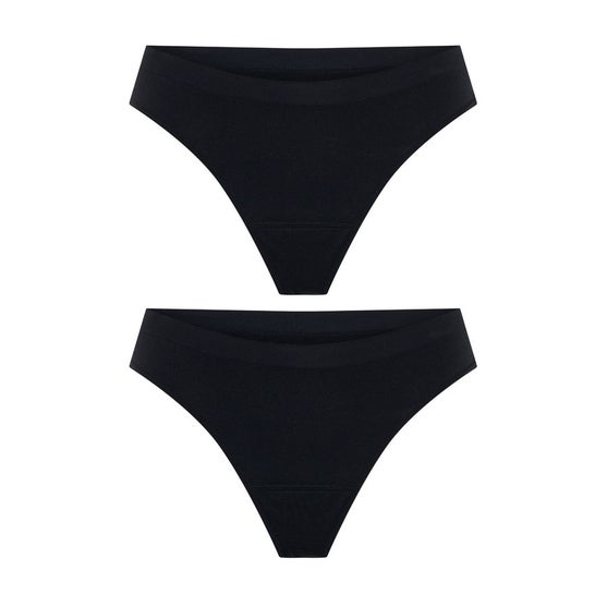 Flux : Modéré Absorption : 20 ml Équivalent à : 4 tampons de 5 ml • Taille moyenne, coupe haute sur la jambe. • Arrière type string, sans couverture à l'arrière. • Ceinture en point élastique avec côtés sans coutures pour un confort à 360°. • Bord élastique doux. • Logo Modibodi en jacquard au centre de l'arrière de la ceinture. • Confectionné en nylon recyclé doux et élasthanne. • Zone absorbante Modérée : retient 20 ml (équivalent à 4 tampons). • Doublure noire qui contrôle les odeurs et prévient les taches. • Couche en poli-brosse qui absorbe l'humidité pour te garder au sec. • Certification Oeko-Tex Standard 100, sans substances nocives. Entretien : • Après chaque utilisation : laver délicatement en machine à froid, suspendre pour sécher, réutiliser et répéter. Ne pas utiliser d'assouplissant, ne pas laisser tremper, ne pas utiliser de javel. Ne pas repasser. Ne pas utiliser de sèche-linge.
