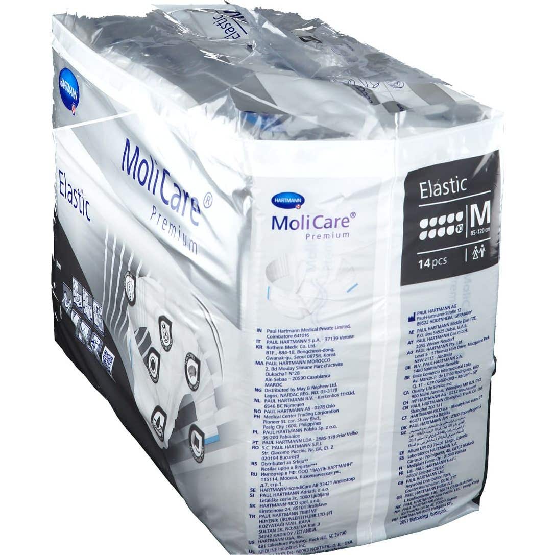 MoliCare Premium Elastic Couche 10 Gouttes Taille M 14uds sont des couches destinées aux adultes souffrant d'incontinence urinaire et/ou fécale très grave.