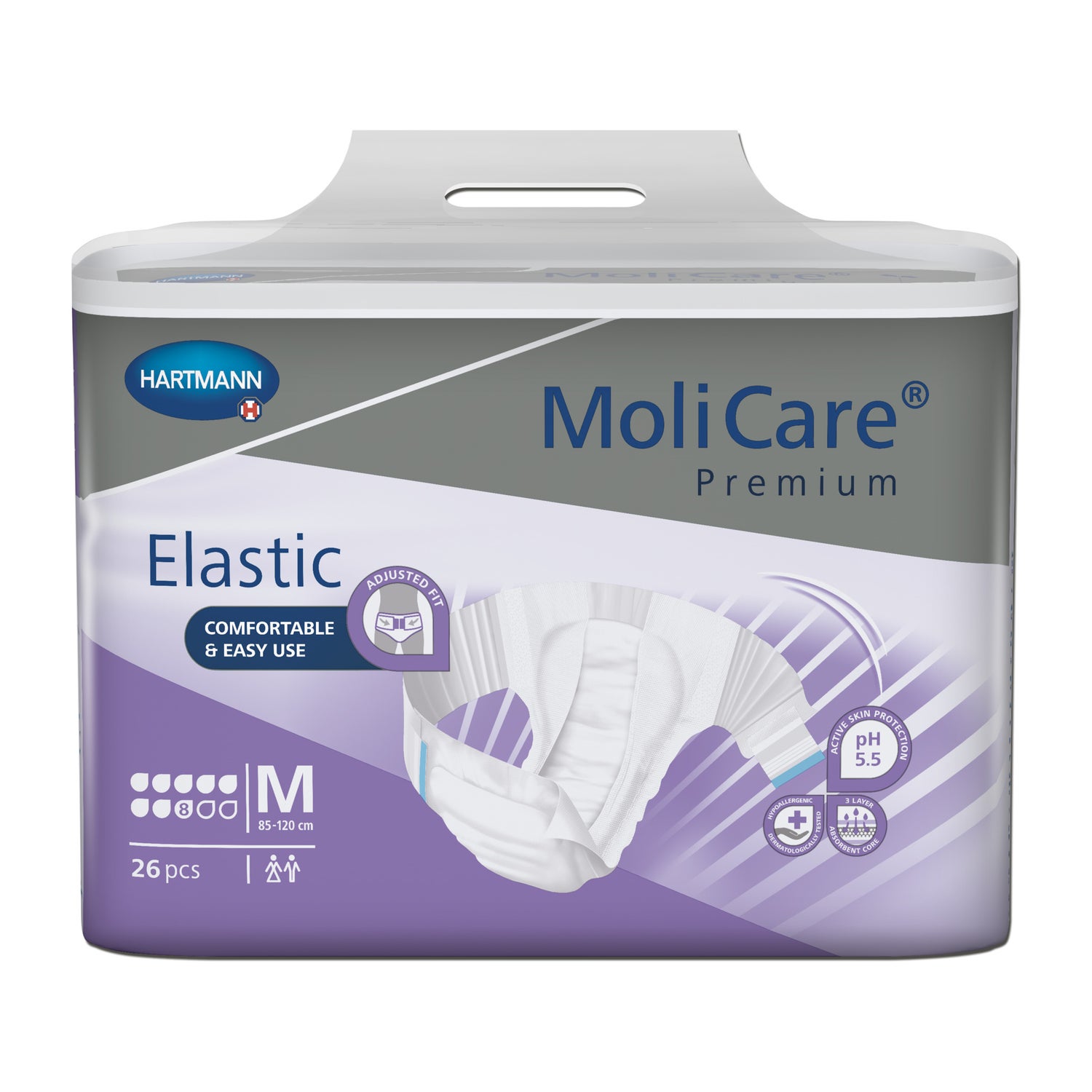 Le Molicare Premium Slip Elastic 8 gouttes T. M offre une protection fiable en cas d'incontinence urinaire et/ou fécale modérée à sévère.