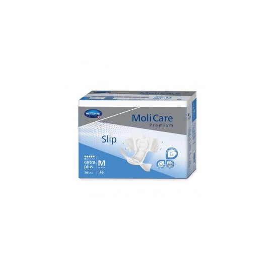 Molicare Premium Slip Extra Plus est parfait pour les fuites d'urine et de selles. Rapidement absorbée et anti-fuite, elle absorbe l'humidité instantanément et neutralise les odeurs. Comprend des ailes sur les côtés pour bien maintenir la zone.