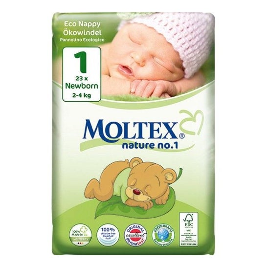 Des couches écologiques fabriquées à partir de matériaux 100% durables et doux pour favoriser l'hygiène de bébé. Conçu pour fournir 12 heures de protection. Contient un dossier et un drap supérieur de type textile, qui est très doux au contact de la peau de bébé. Permet la circulation de l'air dans la zone du dos en évitant complètement l'humidité et les éventuelles irritations de la peau. Ses bandes latérales élastiques permettent une liberté de mouvement et un confort total. Il possède des propriétés ultra-absorbantes qui permettent de garder les fesses de bébé au sec. Son système de fermeture et ses côtés ultra-élastiques permettent à la couche de s'adapter parfaitement à la taille, aux jambes et aux fesses du bébé. Pour les bébés de 2 à 4Kg, taille 1.