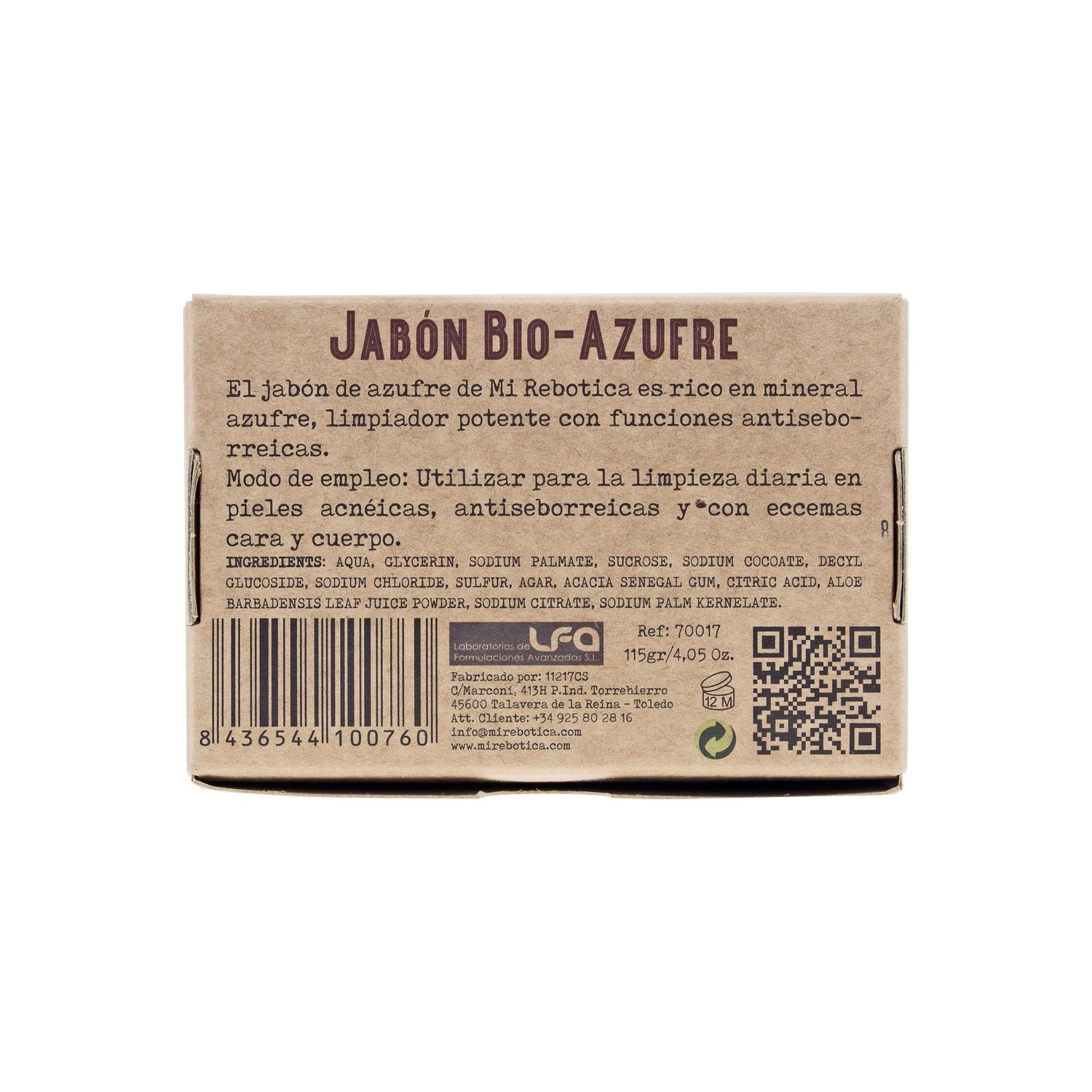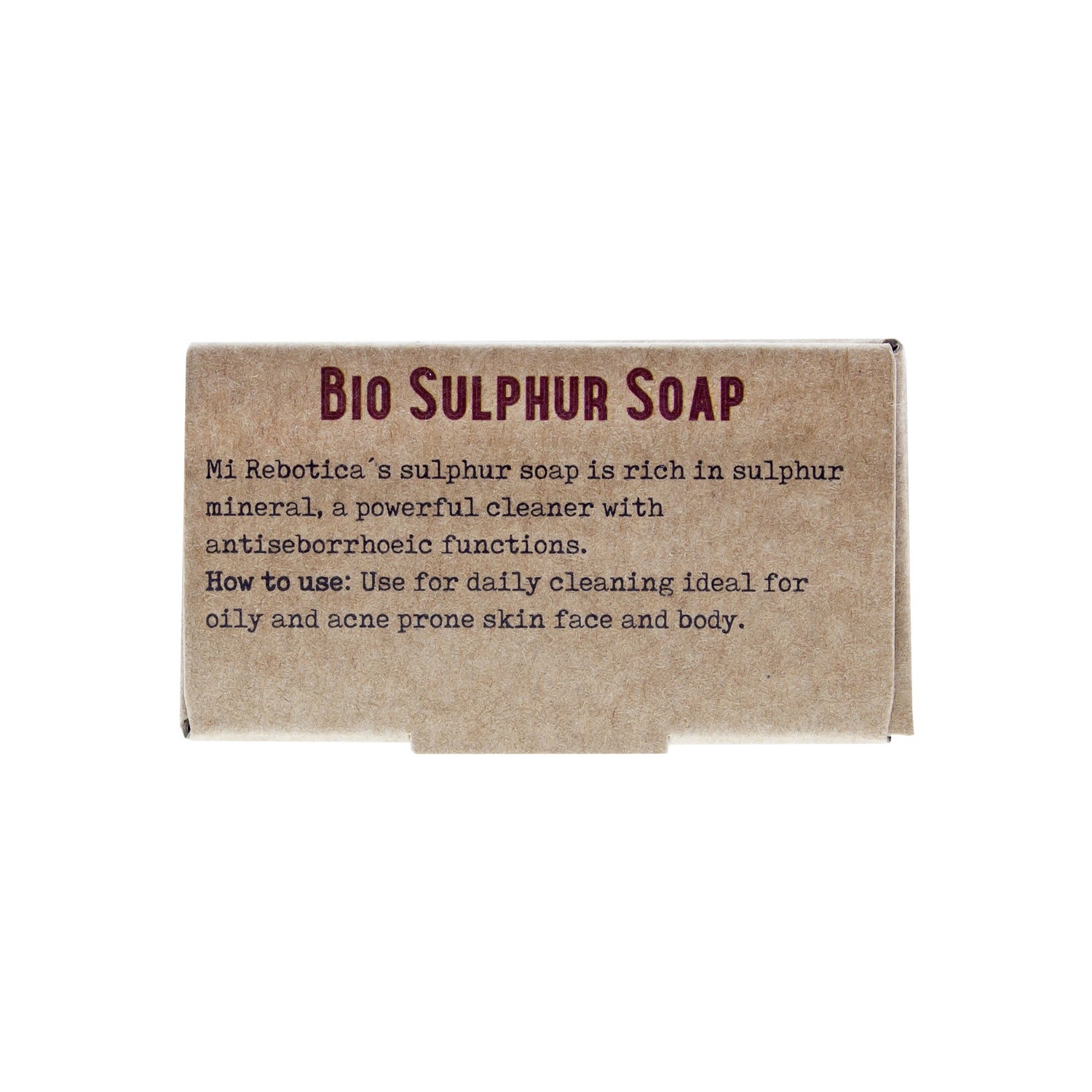 Mon savon Rebotica Traitement Bio Sulfur 115g savon riche en soufre biologique pour peaux mixtes et grasses. C'est un puissant nettoyant aux fonctions anti-séborrhéiques, dont la principale fonction au niveau topique est la séborégulation.