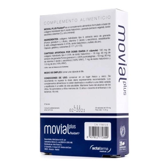 Movial Plus Fluidart 28 Capsules est un complément alimentaire dont la formule aide à stimuler la synthèse du collagène endogène.