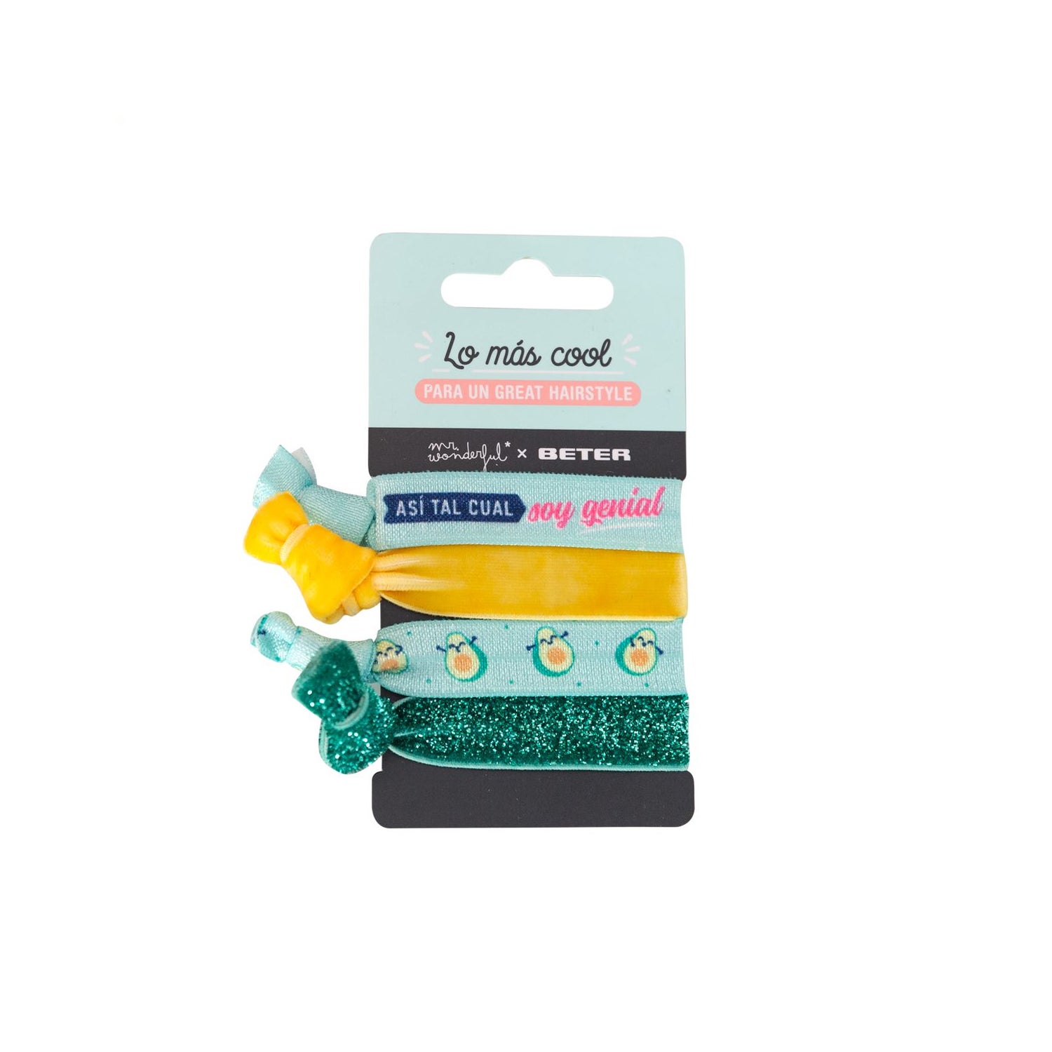Attaches pour cheveux avec un motif de nœud et un imprimé avocat. Il est conçu pour tous les âges, il aide à créer des looks de coiffure. Convient également pour maintenir les cheveux en place lors des soins cosmétiques du visage. Fabriqué dans un matériau résistant qui n'irrite pas le cuir chevelu et ne provoque pas d'inconfort. Convient à tous les types de coiffures. Mr Wonderful est une marque qui, depuis 2012, crée des produits avec des messages qui répandent la joie.