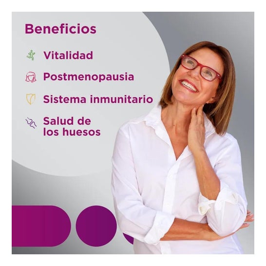 Sa teneur en calcium et en vitamine D contribue à maintenir les os en bon état, tandis que la vitamine C, le sélénium et le zinc aident à renforcer le système immunitaire. Cette association de vitamines et de minéraux est également optimale pour répondre aux différents besoins nutritionnels après la ménopause.