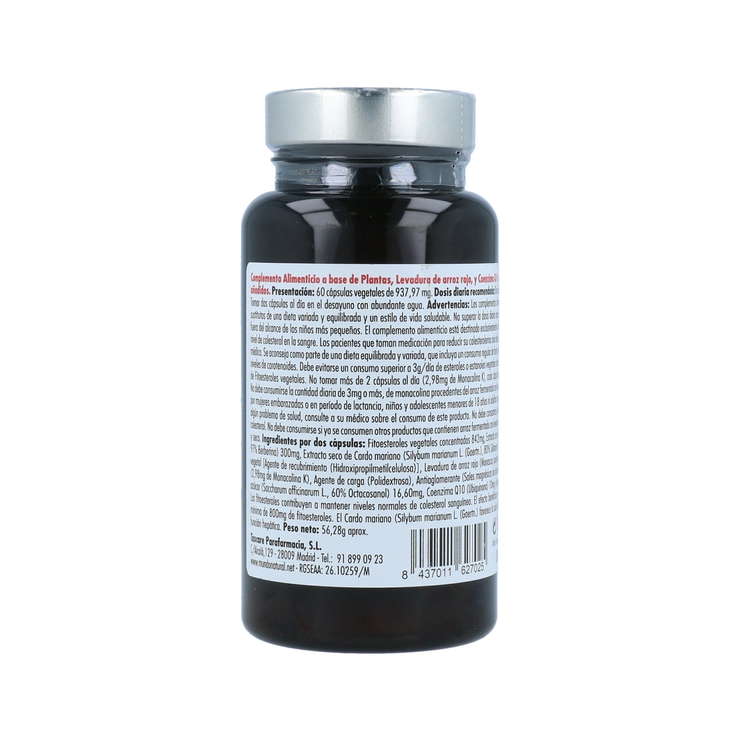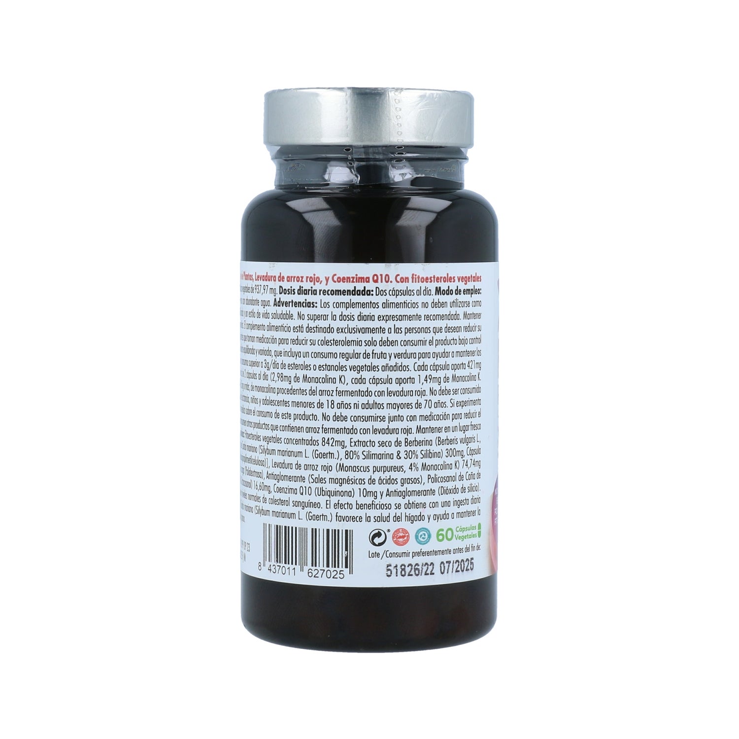 Pour deux gélules : Phytostérols végétaux concentrés 842mg, Extrait sec de Berbérine (Berberis vulgaris L., 97% Berbérine) 300mg, Extrait sec de Chardon Marie (Silybum marianum L. (Gaertn. ), 80% Silymarine & 30% Silybine) 300mg, Gélule végétale (Agent d'enrobage (Hydroxypropyl méthylcellulose)), Levure de riz rouge (Monascus purpureus, 4% Monacoline K) 74.74mg (2.98mg Monacoline K), Agent de charge (Polydextrose), Anti-agglomérant (Sels de magnésium d'acides gras), Policosanol de canne à sucre (Saccharum officinarum L., 60% Octacosanol) 16.60mg, Coenzyme Q10 (Ubiquinone) 10mg et Anti-agglomérant (dioxyde de silicium).