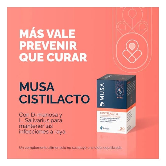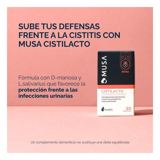 D-mannose, agent d'enrobage (hydroxypropylméthylcellulose (E-464)), Lactobacillus salivarius CECT 30632, agent de charge (amidon oxydé (E-1404)), lubrifiant (stéarate de magnésium (E-470b)), antioxydant (acide ascorbique (E-300)).