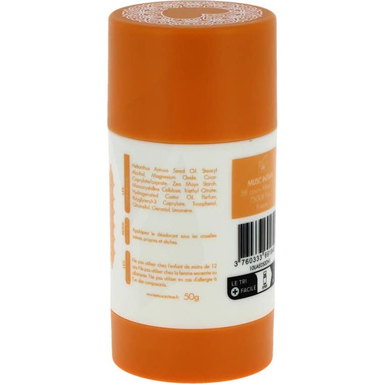 Musc Intime Déodorant Fleur d'Ambre 50 gr est un déodorant solide naturel qui combine l'essence d'Ambre, de Rose et de Musc Blanc, offrant une protection efficace et une fraîcheur intense. Ce produit est conçu pour neutraliser les odeurs indésirables et laisser la peau parfumée de manière durable.