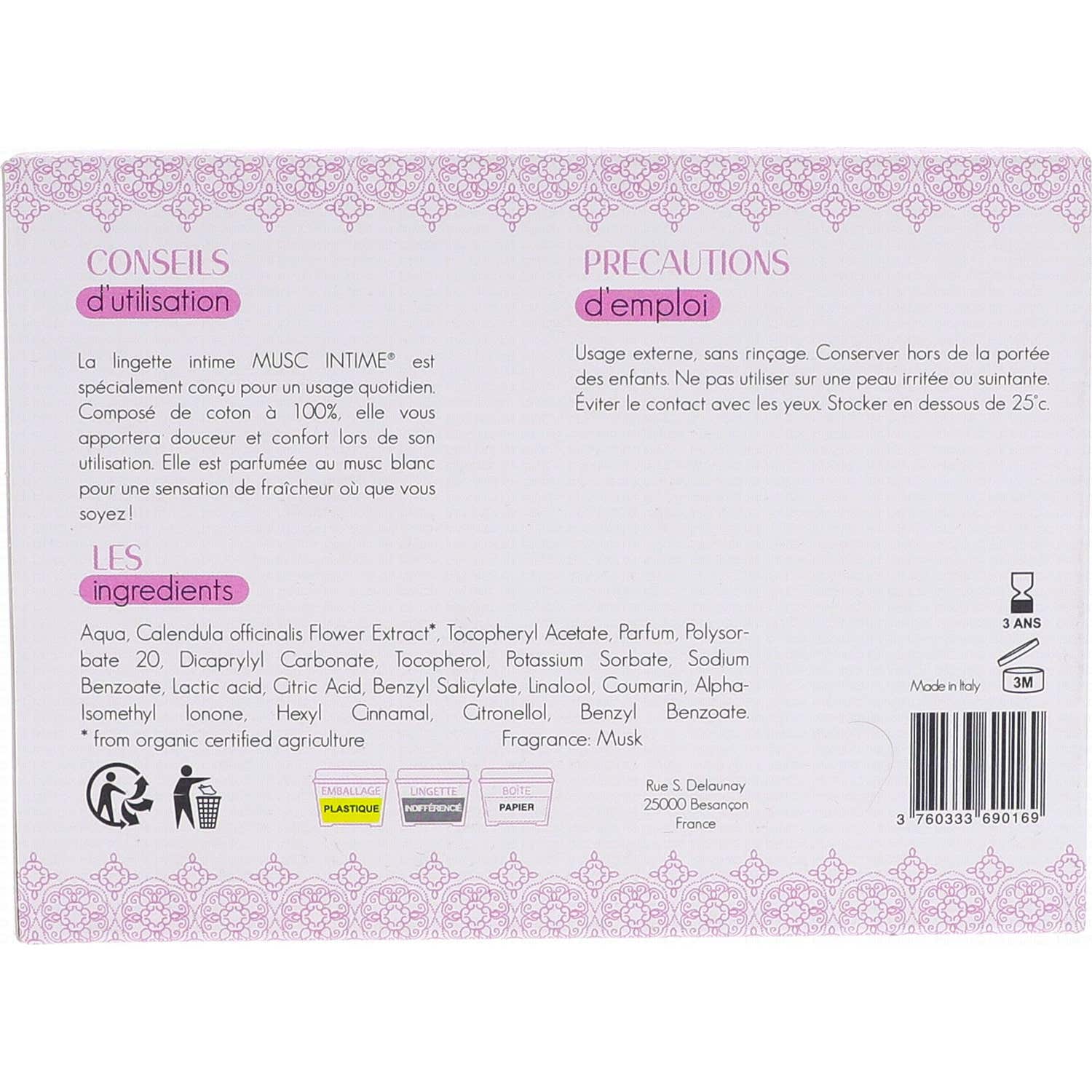 Musc Intime Lingettes Individuelles Musc Blanc 30uds sont un produit pratique et discret, conçu pour maintenir l'hygiène intime de manière efficace. Ces lingettes sont entièrement fabriquées en coton, ce qui garantit un nettoyage doux et respectueux de la peau.