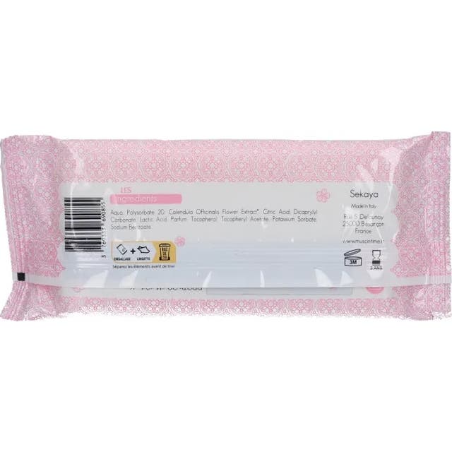 Musc Intime Lingette Intime Humaine Sakura L'Innocent est un produit conçu pour le nettoyage et la fraîcheur de la zone intime. Chaque paquet contient 30 unités imprégnées d'un délicat parfum de musc blanc, d'amande et de fleur de cerisier, qui offrent une expérience sensorielle agréable tout en prenant soin de ton hygiène personnelle.
