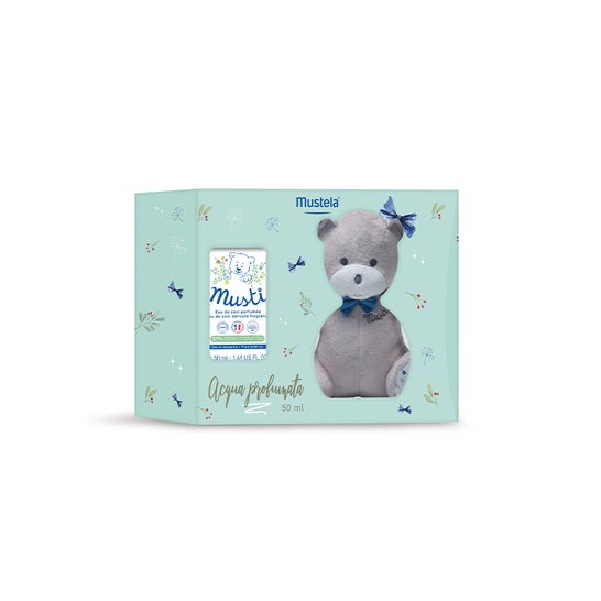 Duo de produits conçu pour les bébés à partir de 6 mois. Contient un parfum de 100ml, à base d'extraits de bleuet et de tilleul, aux propriétés hydratantes. Sans alcool, parabènes, phtalates et phénoxyéthanol. Testé sous contrôle dermatologique et pédiatrique. Livré dans un flacon pulvérisateur pratique. Comprend un ours en peluche blanc tout doux avec des détails de petites étoiles.