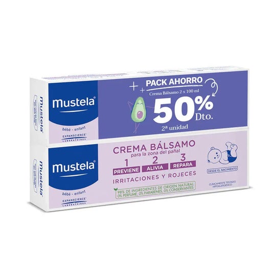 Mustela Crème Baume 1 2 3 Duo 2x100ml est un baume qui aide à réduire les irritations et les rougeurs du derrière du bébé.