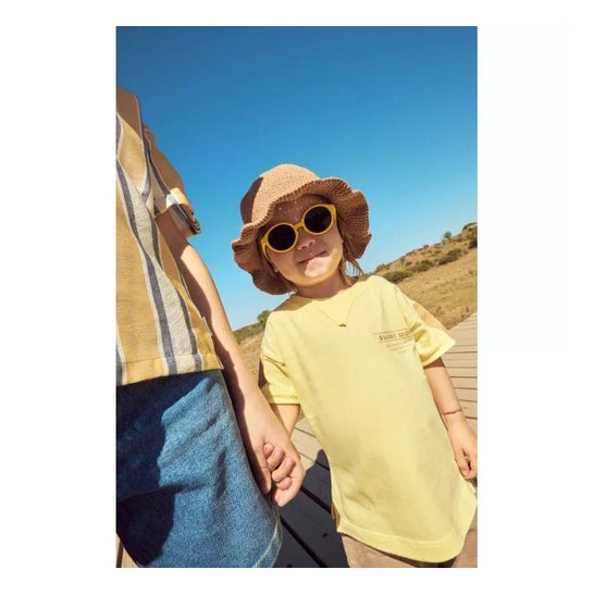 Mustela Avocado Sunglasses 0-2 Years Yellow 1pc sont des lunettes de soleil pour enfants spécialement conçues pour protéger leurs yeux des rayons du soleil. La monture est en caoutchouc recyclé et s'adapte de manière ergonomique au visage des petits. En outre, elles sont légères, flexibles et résistantes, même aux petites éclaboussures d'eau. Comprend un étui en carton et un chiffon en microfibre. Convient aux enfants de 0 à 2 ans.