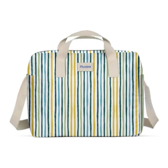 Coffret de soins corporels comprenant une trousse de toilette rayée, un gel de bain, un lait corporel, une crème baume, une eau de Cologne et une lingette nettoyante en fibres végétales. Il permet de garder la peau de bébé propre et parfumée, à l'intérieur comme à l'extérieur de la maison. Les produits sont hypoallergéniques et ont été testés sous contrôle dermatologique.