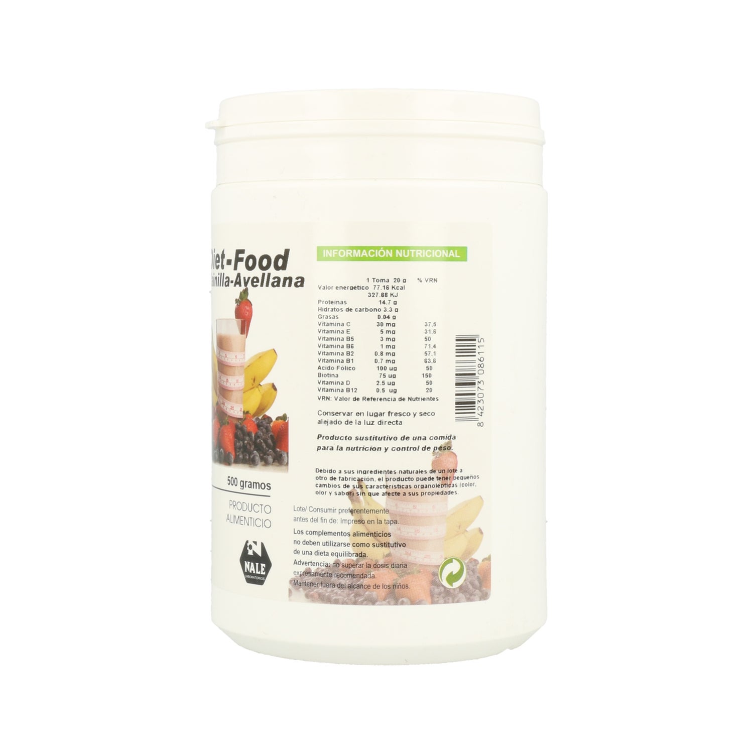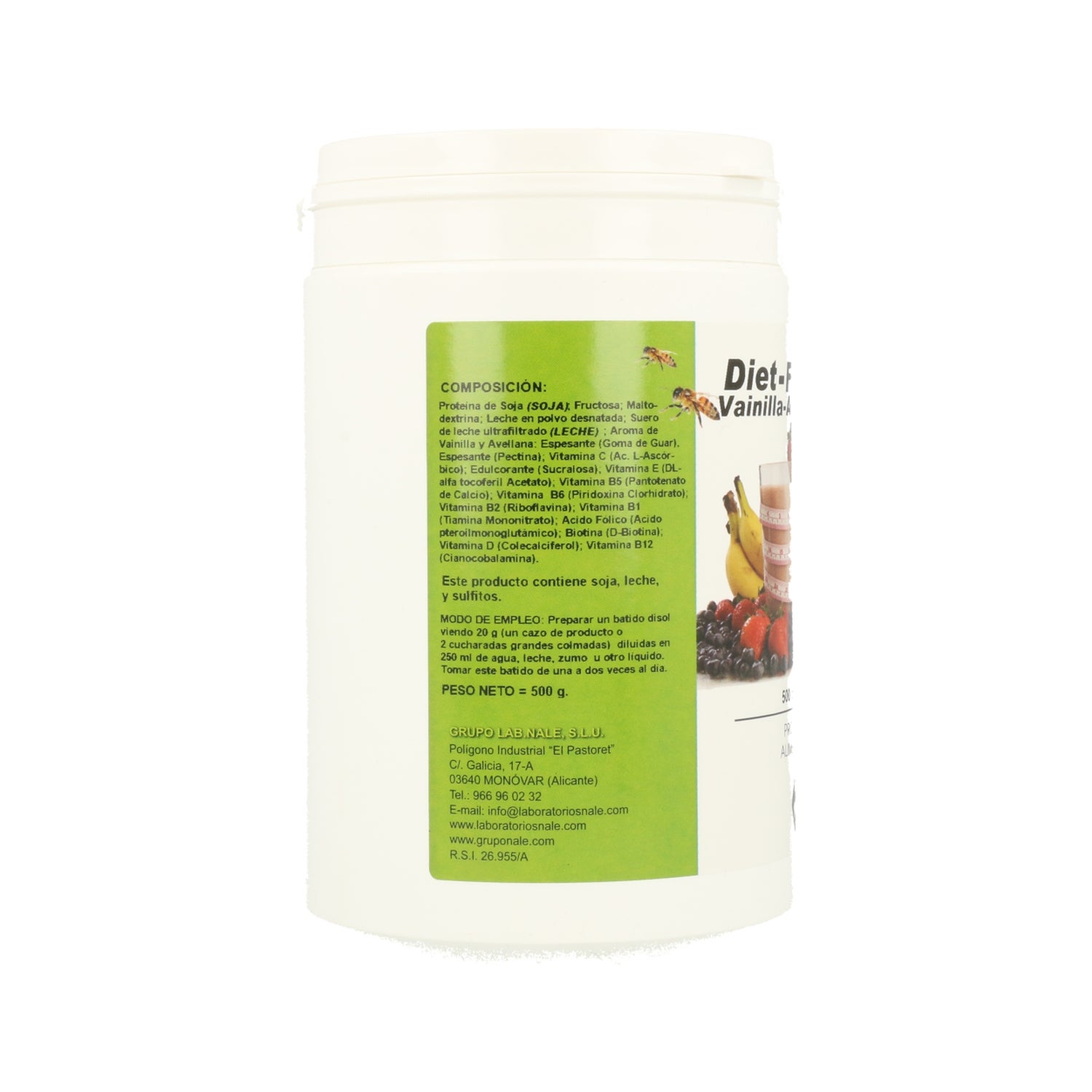 Produit alimentaire en poudre pour la préparation de shakes aromatisés, enrichis en protéines et destinés à remplacer les principaux repas de la journée.La composition fournit : Biotine, Arôme vanille et noisette, Lactosérum ultrafiltré, Arôme selon saveur, Vitamine B7-Biotine, Lait écrémé en poudre, Epaississant, Vitamine B5, Vitamine D, Acide folique, Gomme de guar, Maltodextrine, Vitamine E, Vitamine B12, Vitamine B6, Vitamine B2, Vitamine B1, Vitamine C, Pectine, Protéine de soja, Edulcorant, Fructose.
