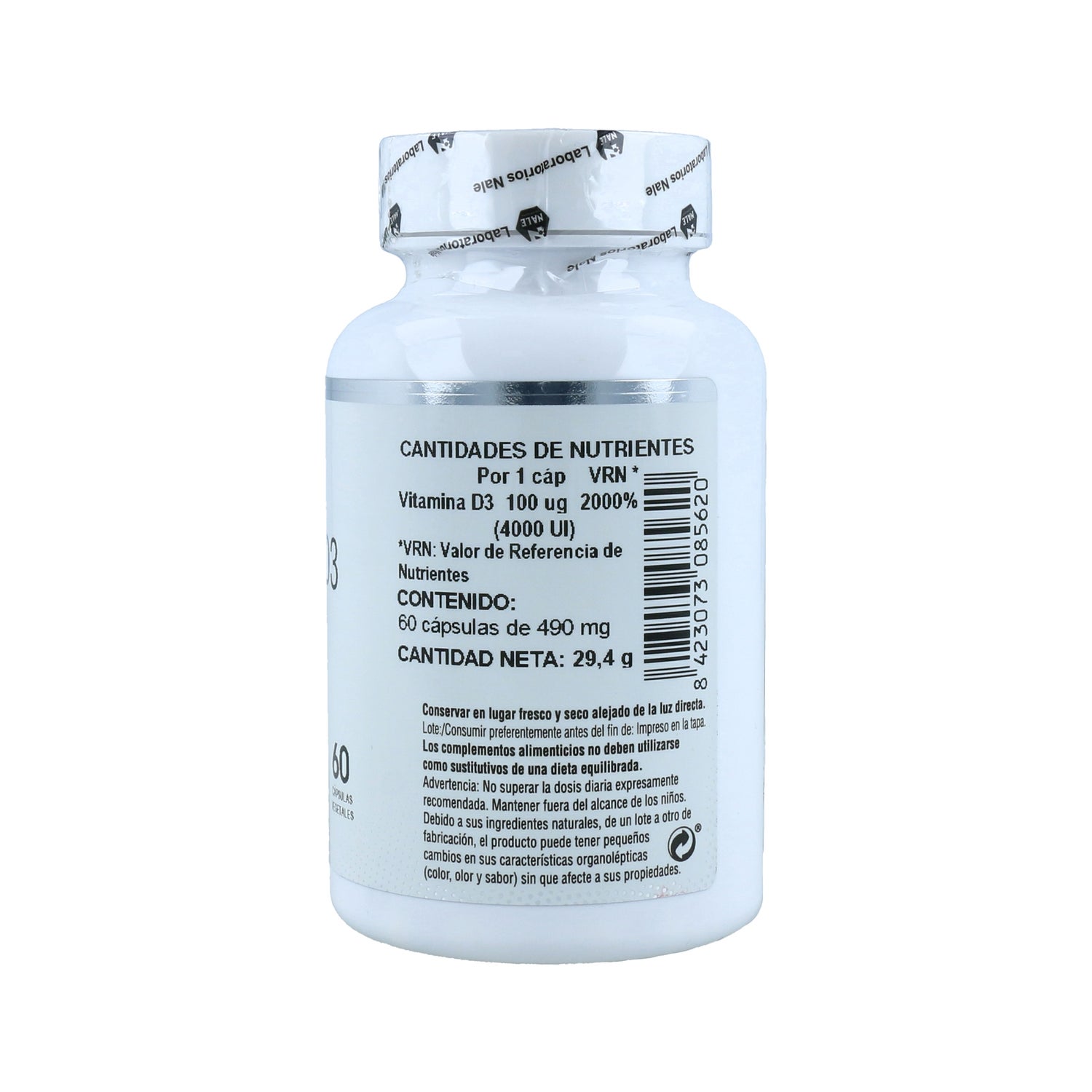 Maltodextrine, gélatine, vitamine D3, dioxyde de titane, gélule végétale.