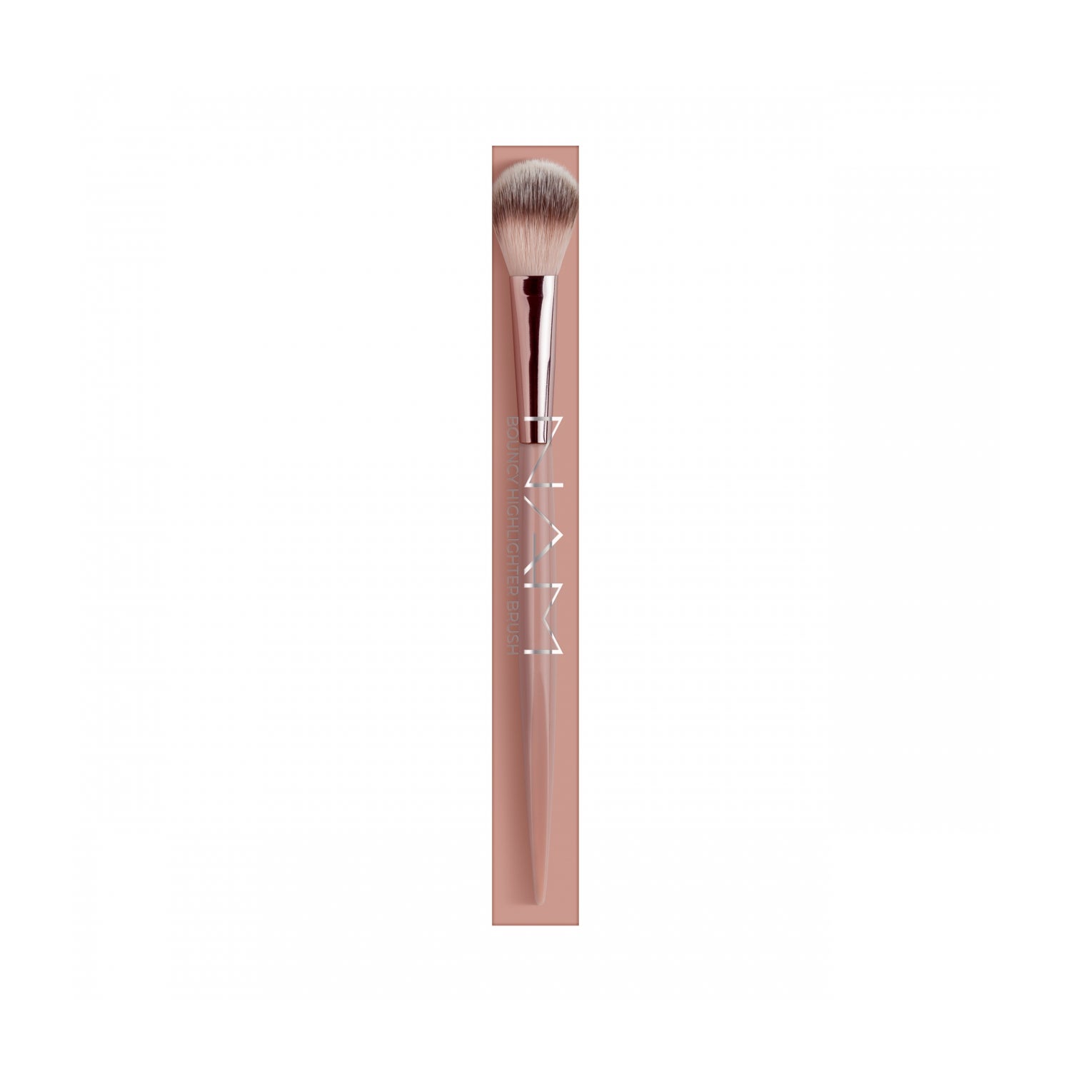 Nam Bouncy Highlighter Brush 1 ud pour une application précise d'illuminateur est un pinceau végan et cruelty free de NAM Cosmetics conçu pour appliquer l'illuminateur avec précision. Il présente un format rond et défini, avec des fibres douces et légèrement aplaties, idéal pour rehausser :