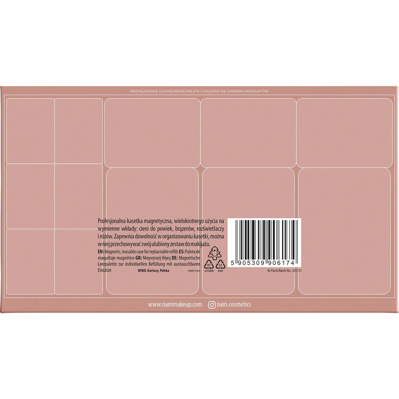 Palette Magnétique Grande Nam 21 cm x 15,5 cm 1 ud pour organisation personnalisée de maquillage permet de créer une palette personnalisée avec des godets magnétiques de NAM. Elle a une grande taille de 21 cm x 15,5 cm et facilite l'organisation de :