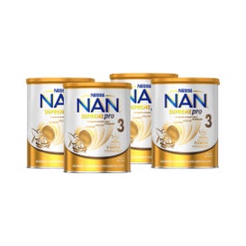 NAN Supreme Pro 3 4x800g est un lait de suite pour bébés à partir de 12 mois et, avec d'autres aliments, fait partie d'une alimentation diversifiée pour le bébé et aide à fournir les nutriments nécessaires à son développement.