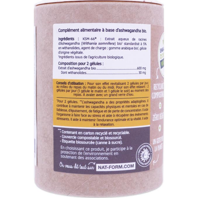 Nat&Form Ashwagandha Bio 600mg 60 Perles est un complément alimentaire conçu pour améliorer la résistance de l'organisme face au stress physique et mental. Ce produit est particulièrement recommandé dans les situations de :