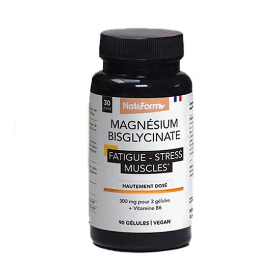 Nat&Form Bisglycinate de Magnésium 300mg + Vitamin B6 90 Gélules est un complément alimentaire à base de magnésium et de vitamine B6.