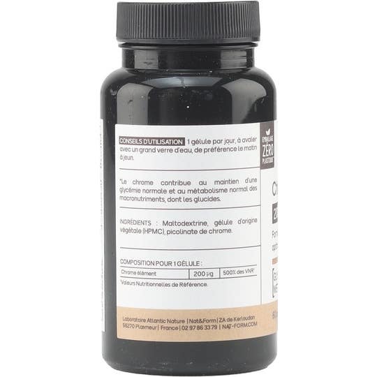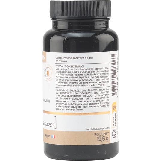 Le chrome agit sur l'insuline, qui est cruciale pour la gestion du sucre dans l'organisme. En maintenant un niveau stable de sucre dans le sang, il facilite le contrôle des envies et évite des habitudes alimentaires peu saines, comme le grignotage excessif. Ce produit peut être un soutien dans un programme de contrôle du poids, surtout lorsqu'il est combiné avec un exercice régulier et une régime équilibré.