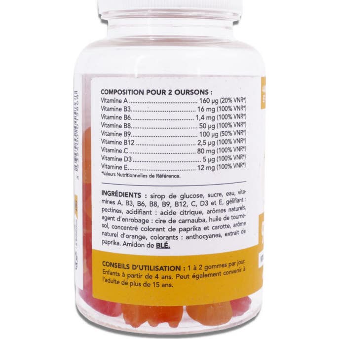Vitamines A, C, D3, E et plusieurs du groupe B