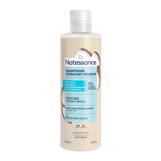 Natessance Shampoo d'usage fréquent Coco Kratine 250Ml est idéal pour le soin quotidien des cheveux sensibles et affaiblis. Sa formule douce avec huile de coco biologique et kératine végétale nettoie délicatement, apportant brillance, douceur et vitalité dès la première utilisation.