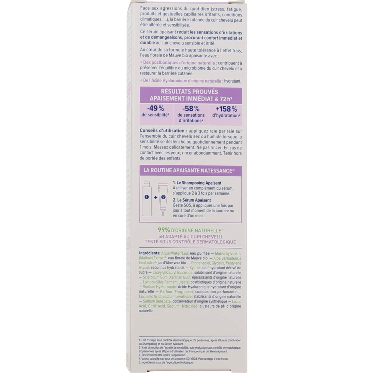 Natessance Sérum Calmante Malva Bio 75 ml est un traitement capillaire spécialement conçu pour les cuirs chevelus sensibles et irrités. Sa formule, qui contient 99% d'ingrédients d'origine naturelle, répond de manière efficace aux agressions quotidiennes qui peuvent affecter l'équilibre du cuir chevelu, telles que :