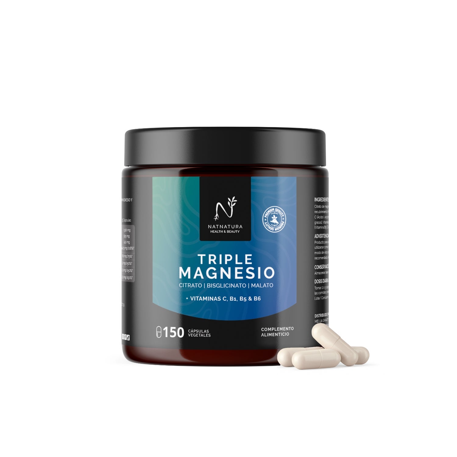 Formule avancée avec trois types de magnésium hautement absorbables et des vitamines B et C qui améliorent l'énergie, l'équilibre nerveux et la fonction musculaire.