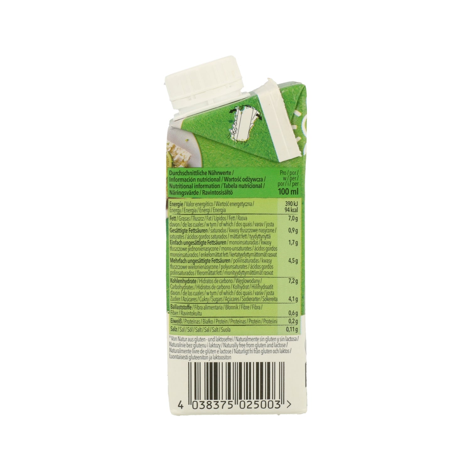Crème légère au goût intense et délicieux. Alternative à la crème classique, idéale pour la cuisson des plats cuisinés ou cuits au four. Sans gluten, sans lactose, sans OGM.