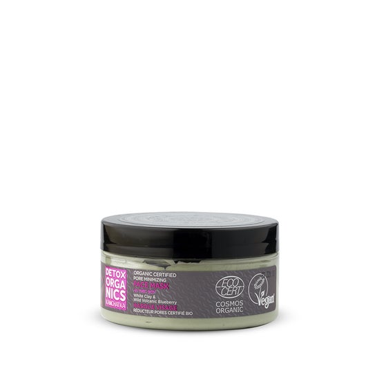 Masque facial végétalien pour le soin et la santé de la peau du visage. Formulé à base d'argile blanche et d'extrait de myrtille volcanique sauvage, il aide à purifier la peau et à réduire l'apparence des pores dilatés. Il a une texture crémeuse qui apporte des vitamines et des minéraux à la peau avec des effets apaisants et nourrissants. Fabriqué avec des ingrédients issus de l'agriculture biologique. Convient à tous les types de peau.