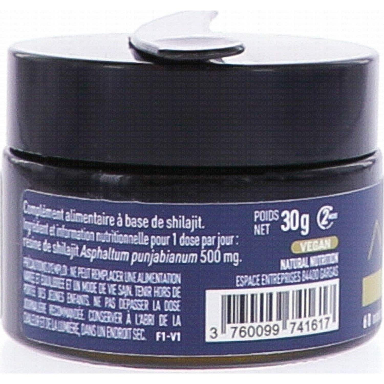 Natural Nutrition Shilajit Résine Pure 30g est un complément alimentaire qui se présente sous forme de résine pure, avec une haute concentration d'ingrédients actifs, standardisée à 70% d'acide fulvique. Ce produit, connu sous le nom de "l'or noir de l'Himalaya", est une résine minérale rare, utilisée depuis des siècles dans la médecine ayurvédique.