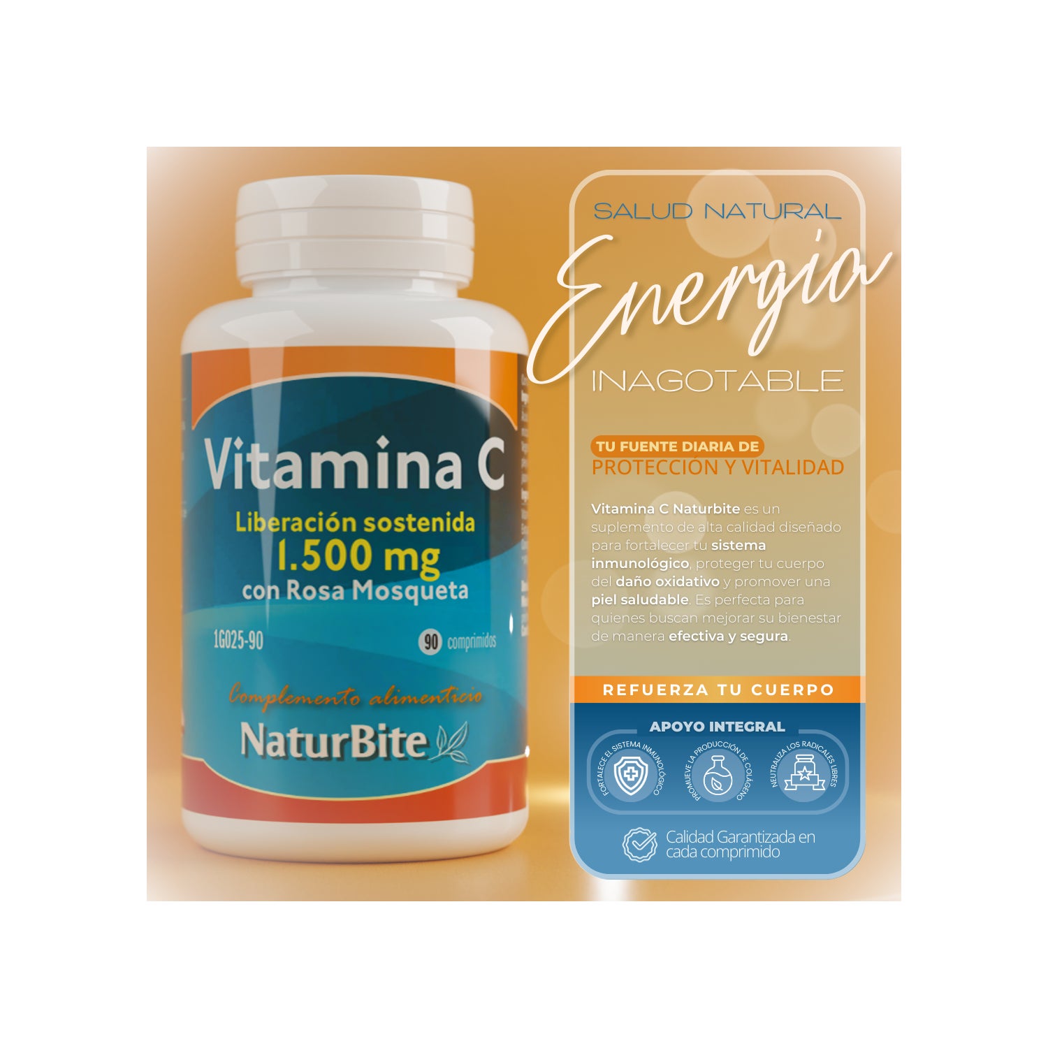 NaturBite Vitamine C 1500mg Libération Prolongée 90 comprimés est un complément alimentaire à base de vitamine C et églantier.