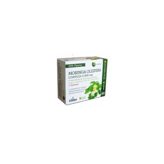 Complément alimentaire, à base d'extrait de moringa, un super aliment grâce aux propriétés et principes actifs qu'il apporte à votre corps, sans avoir besoin d'autres éléments chimiques invasifs. Le complément contribue au système immunitaire et aux processus inflammatoires, pour contrer la présence de toutes sortes de substances nocives pour notre corps, comme le cholestérol et le sucre.