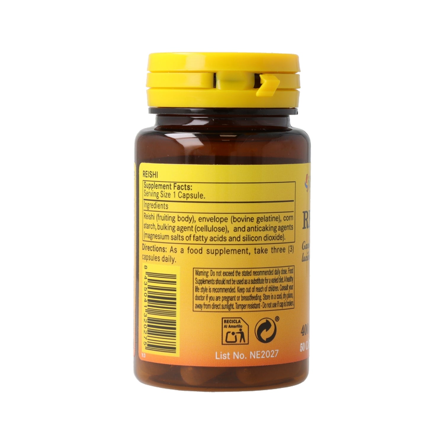 Complément alimentaire en gélules à base de reishi, un champignon d'origine orientale bien connu pour ses multiples bienfaits pour l'organisme allant de l'aide au système immunitaire et avoir des propriétés anti-inflammatoires et retarder le vieillissement cellulaire, à l'amélioration de problèmes tels que l'anxiété, l'insomnie et le stress pour son pouvoir de calmer l'esprit. Il présente des avantages pour les personnes qui veulent contrôler le niveau de glucose dans le sang et l'hypertension artérielle, améliorer le système cardiovasculaire et le cholestérol.
