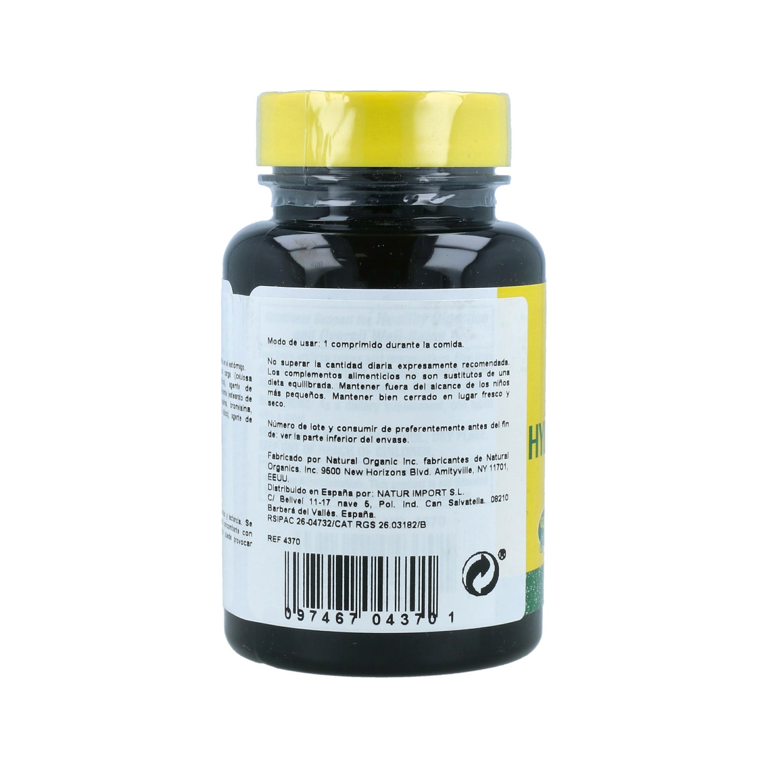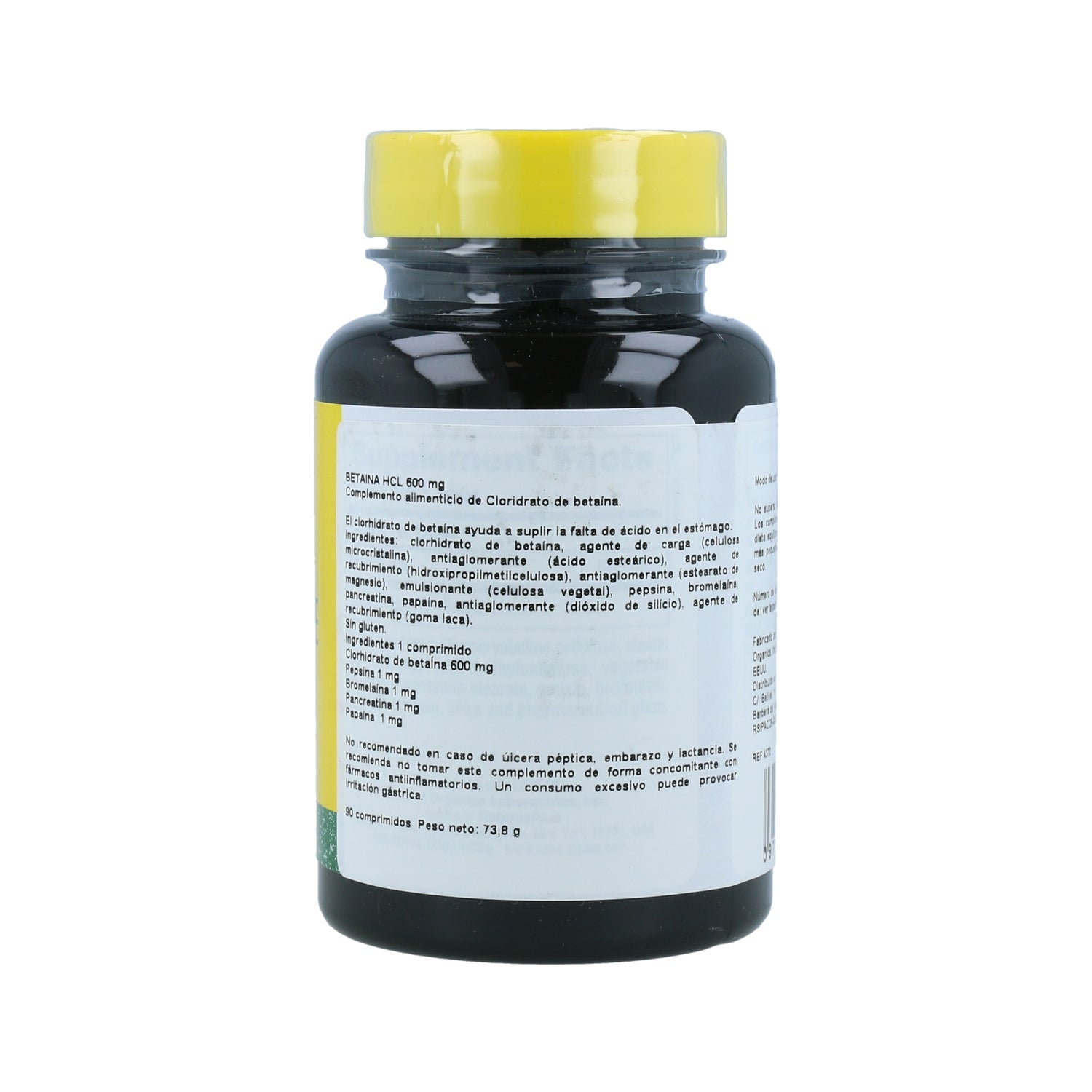 Chlorhydrate de bétaïne, agent de charge (cellulose microcristalline), agent anti-agglomérant (acide stéarique), agent d'enrobage (hydroxypropylméthylcellulose), agent anti-agglomérant (stéarate de magnésium), émulsifiant (cellulose végétale), pepsine, bromélaïne, pancréatine, papaïne, agent anti-agglomérant (dioxyde de silicium), agent de glaçage (gomme-laque).