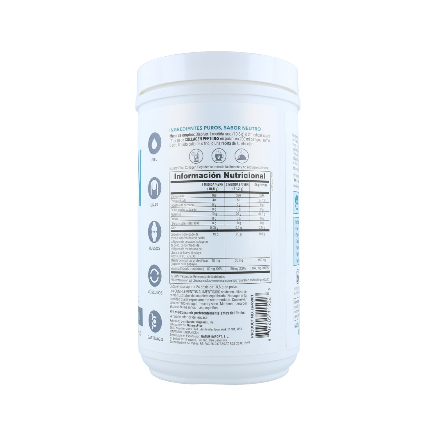 Nature's Plus Collagen Peptides 254g est un complément alimentaire sous forme de poudre qui contribue à la santé des cheveux, de la peau, des ongles et des articulations. Il est formulé à partir de peptides de collagène naturels, un ingrédient qui contribue à améliorer l'élasticité de la peau et à maintenir la santé des articulations.