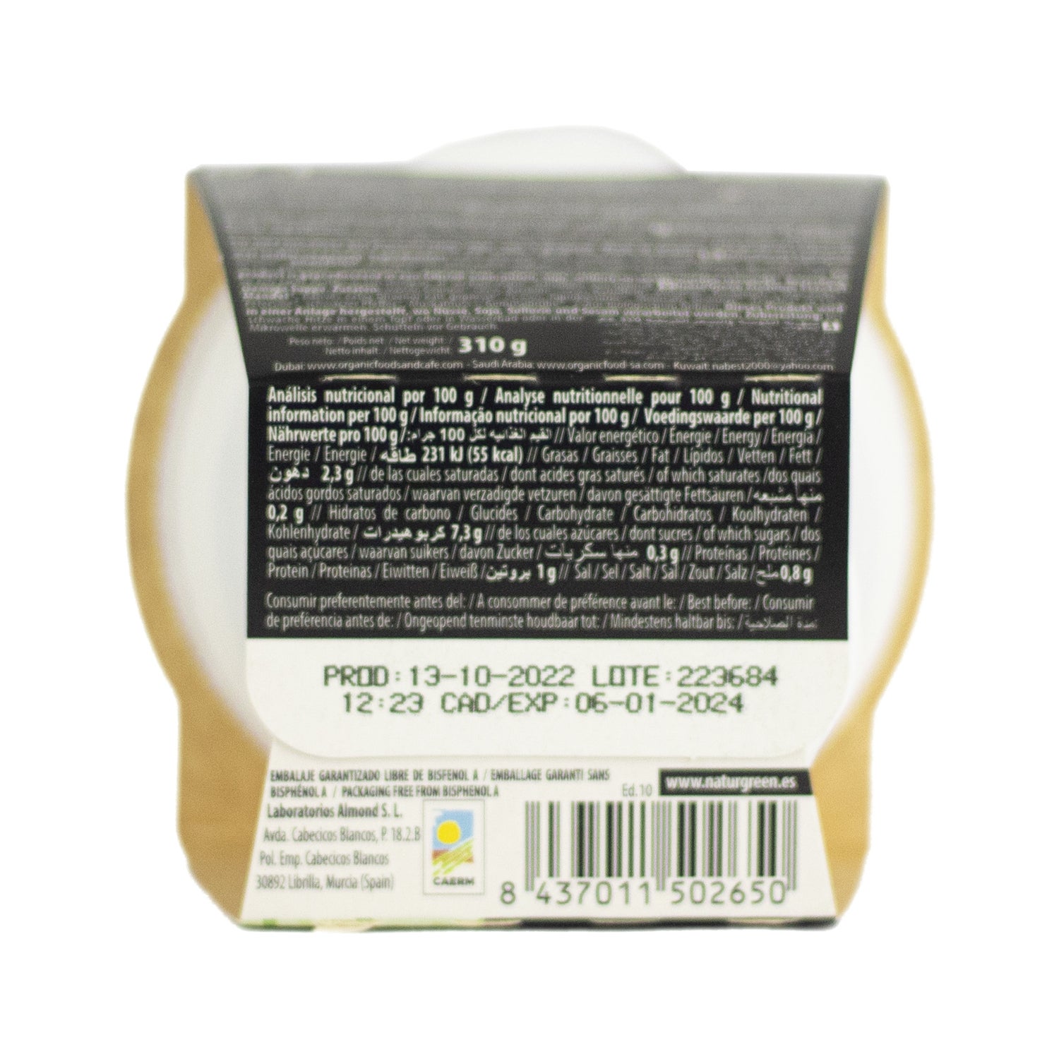 EAU, LÉGUMES, AMANDE, HUILE D'OLIVE EXTRA VIERGE PRESSÉE À FROID, AMIDON DE TAPIOCA, AIL, SEL MARIN ET ÉPICES