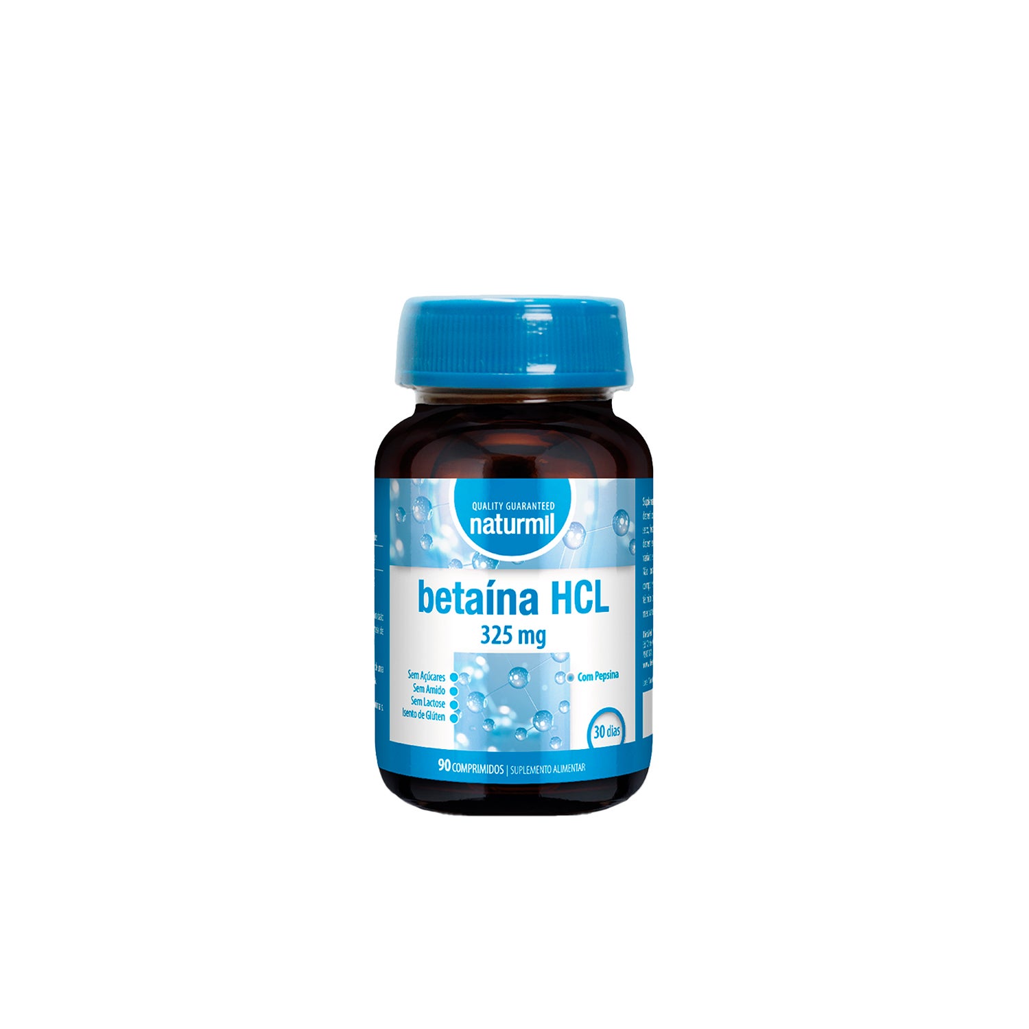 Naturmil Betaïne HCL 325mg 90comp est un complément alimentaire conçu pour favoriser le bon fonctionnement du système digestif. Ce produit se compose de :