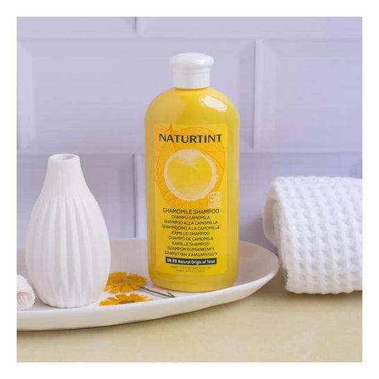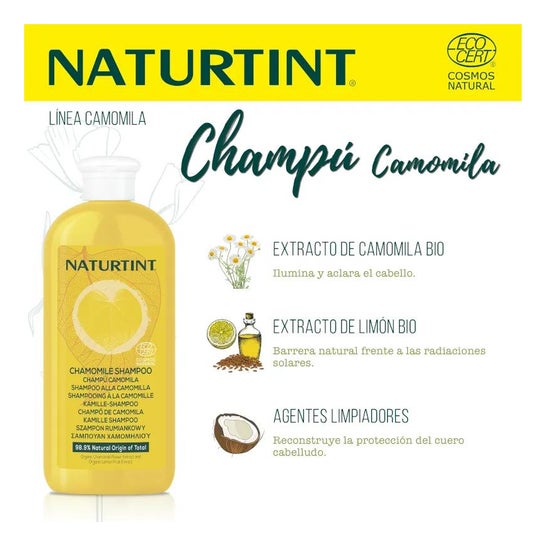 Shampoo élaboré à partir d'ingrédients d'origine naturelle à base d'extrait de camomille, miel, citron et huile de coco et tournesol qui aide à nettoyer et éclaircir les cheveux.